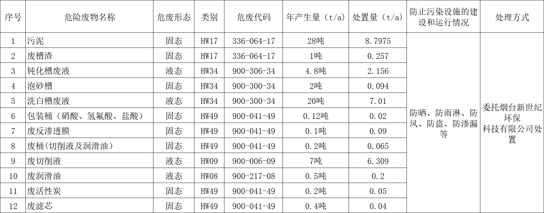 我公司设有危险废物暂存场所,危险废物储存设施建筑面积约16平方米,用于临时储存危险废物。不同类别的危险废物在不同区域分开存放。危险废物仓库按《中华人民共和国固体废物污染环境防治法》等国家规定要求设置明显的危险废物警示标识,采取了必要的防晒、防雨淋、防风、防盗、防渗漏等措施。我公司危险废物有专人负责收集、过磅登记、分类储存等过程的安全管理。