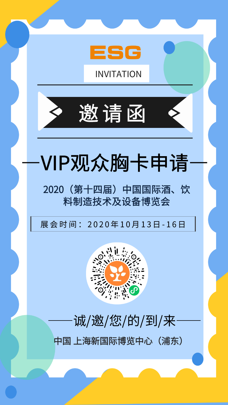 2020(第十四届)中国国际酒、饮料制造技术及设备展览会将于2020年10月13-16日上海新国际博览中心举办。